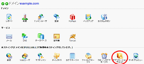 ログイン後のPleskコントロールパネルのメイン画面にこのようなアイコンが追加されます。