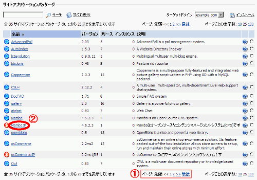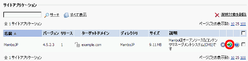 (1)を利用してサイトアプリケーションパッケージの名前がMamboJPとある項目を探します。