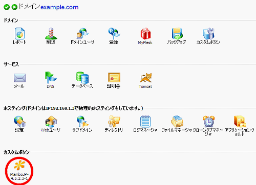 はい:PleskコントロールパネルにMamboへのアクセスボタンを設置します。