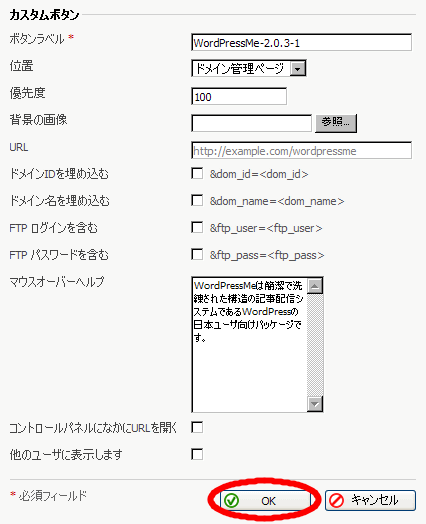 (1)はPleskコントロールパネルにWordPress Meへアクセスするためのボタンを作るかどうかを設定します
