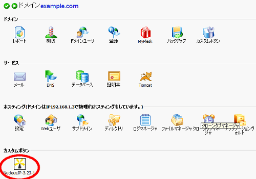 ログイン後のPleskコントロールパネルのメイン画面にこのようなアイコンが追加されます。