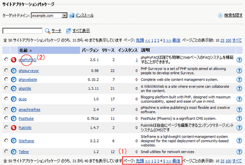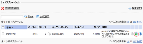(1)を利用してサイトアプリケーションパッケージの名前がphpMyFAQとある項目を探します。