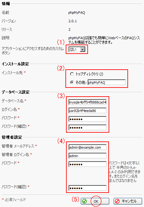 (簡単インストール機能を利用してphpMyFAQを導入された場合別途利用料金が発生しますので、ご理解の上選択下さい)