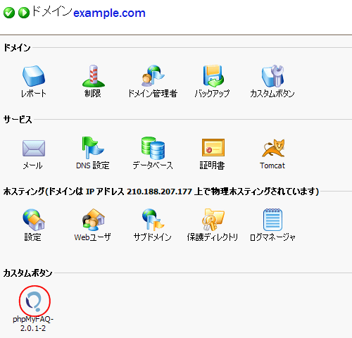 いいえ:PleskコントロールパネルにphpMyFAQへのアクセスボタンは設置しません。