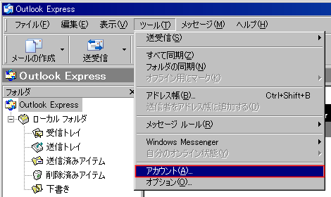 2.メニューバーの「ツール」から「アカウント」を選択します。