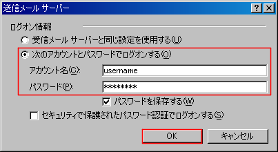 入力が完了したら「OK」のボタンをクリックします。(もしくは受信メールサーバー
